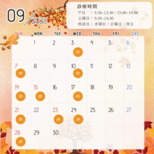 敬老の日・秋分の日は休診