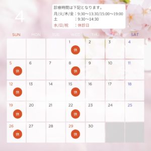 4月の診療予定です。